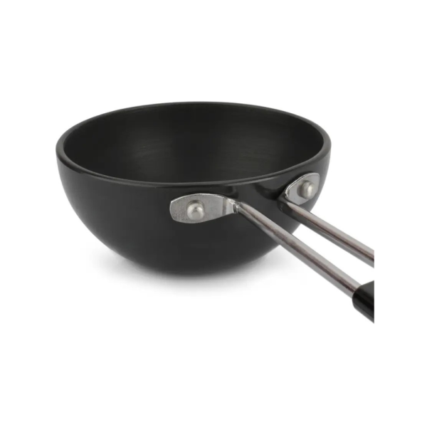The ergonomic construction of this tadka pan in high quality aluminium makes it sturdy and durable while ensuring even distribution of heat throughout the surface.