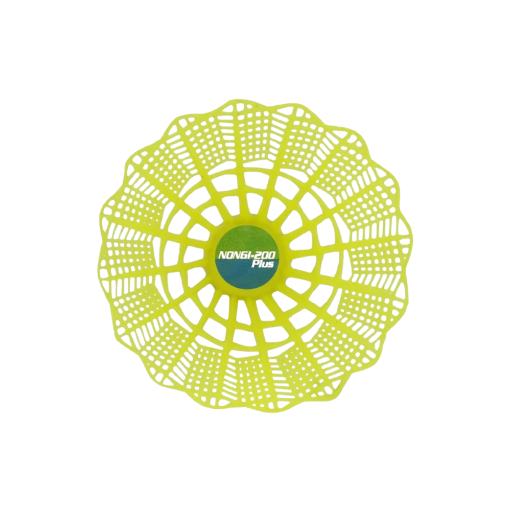 Introducing NONGI badminton plastic shuttlecocks, perfect for casual play and practice sessions. This yellow-colored shuttlecock pack of 10 is designed for durability and fun, making it ideal for beginners and recreational players.